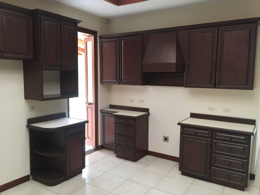 Very spacious house with prime location in Los Laureles Escazu. It is located in a gated community with just a few houses, very private, quiet, but at tha same time very close to the most important shopping centers and commercial areas of Escazu. Two of the four rooms have walk-in closet and own bathroom, ceiling fans on each of the four bedrooms, two main living rooms, private pool and a very big terrace perfect for nice family activities. You also have space for parking six different cars by parking two more cars in front of the house.